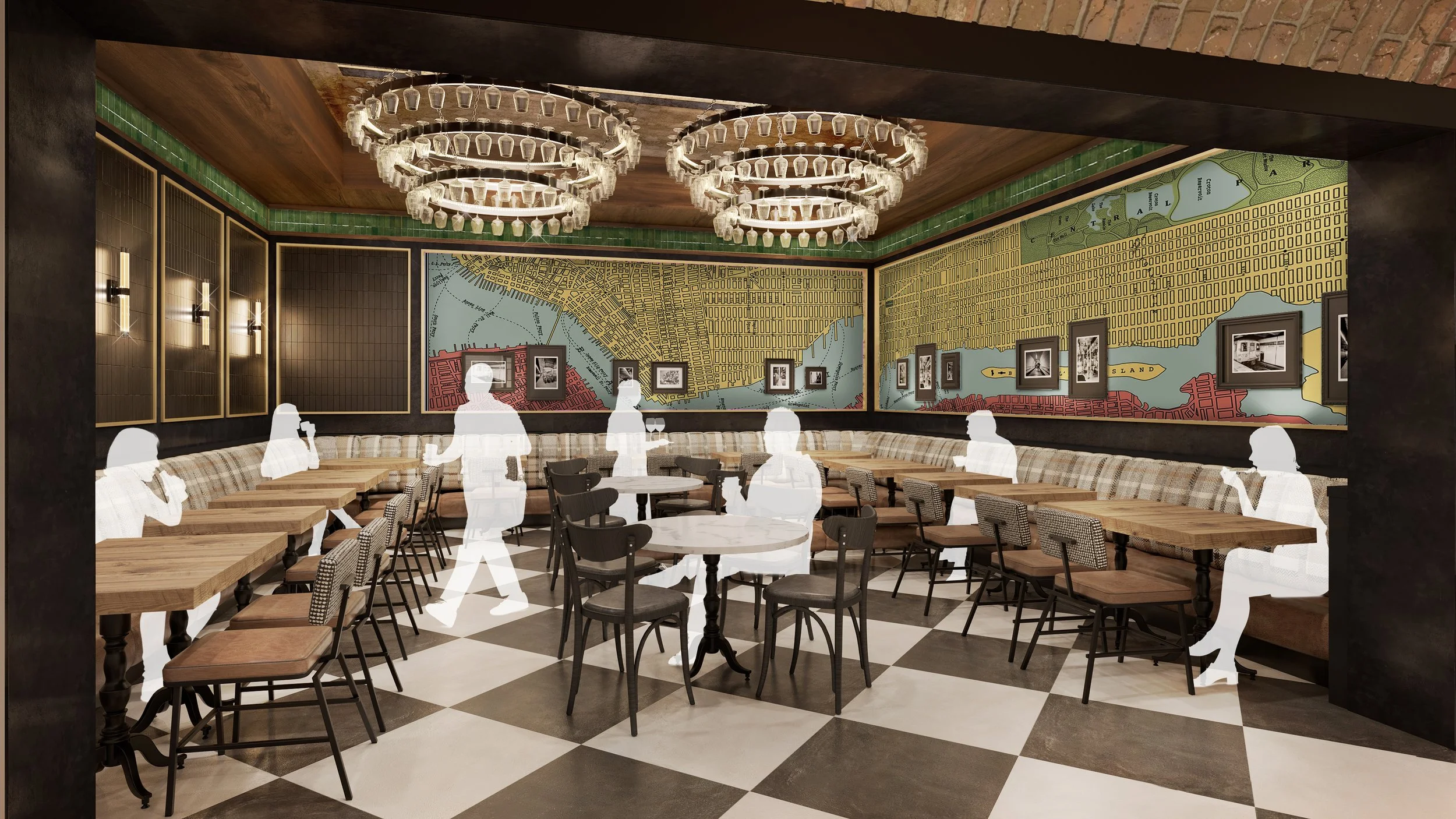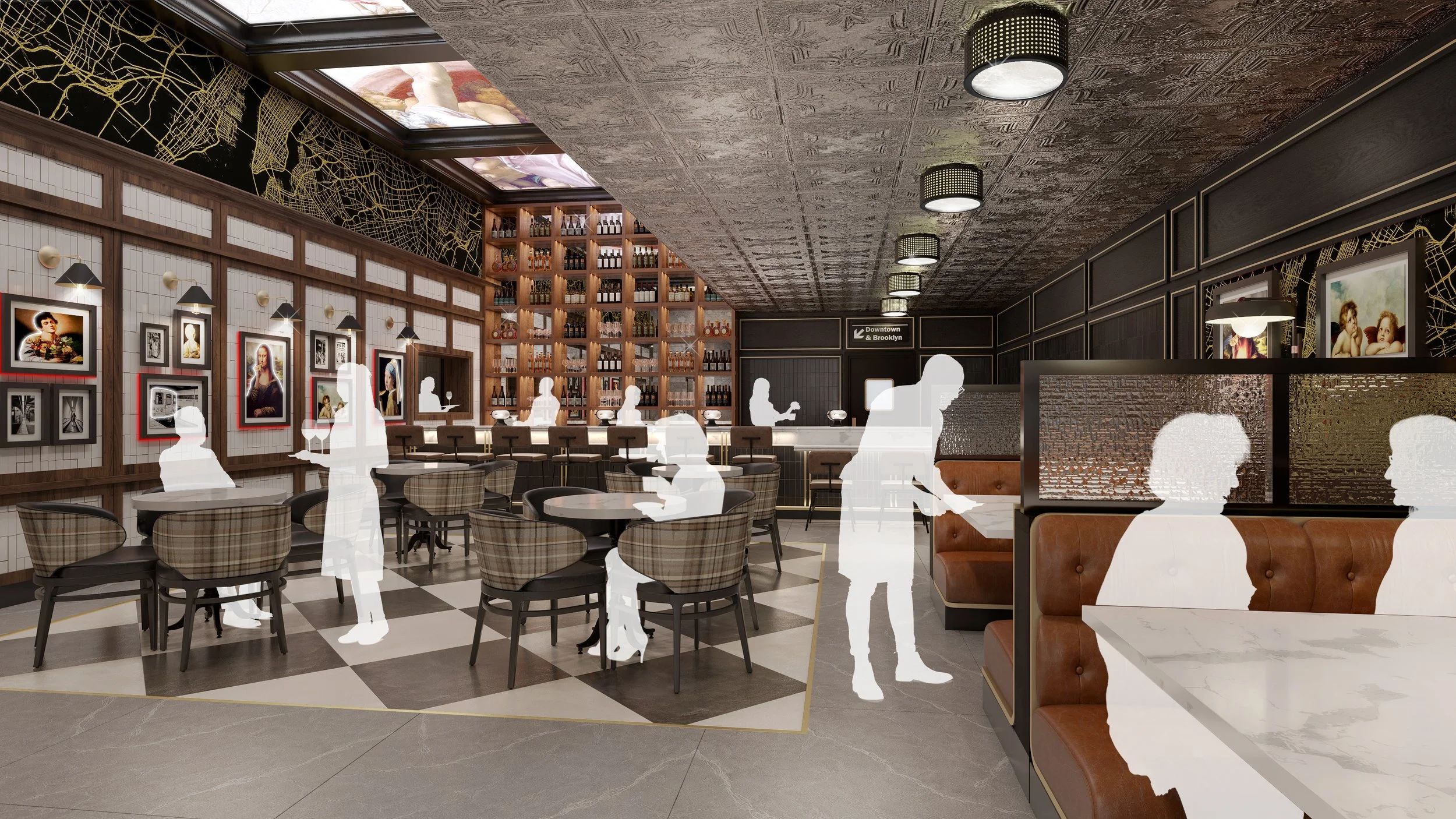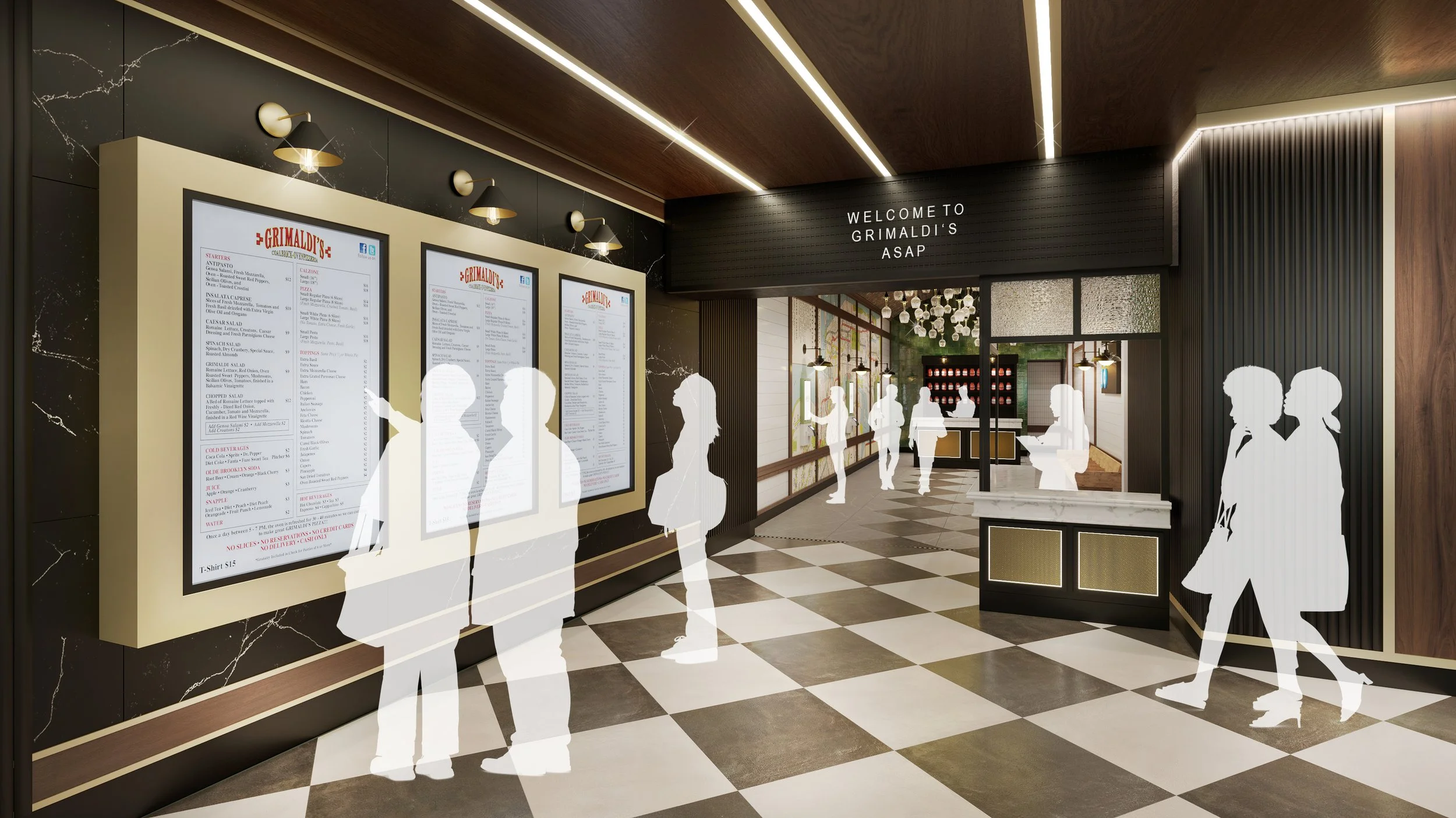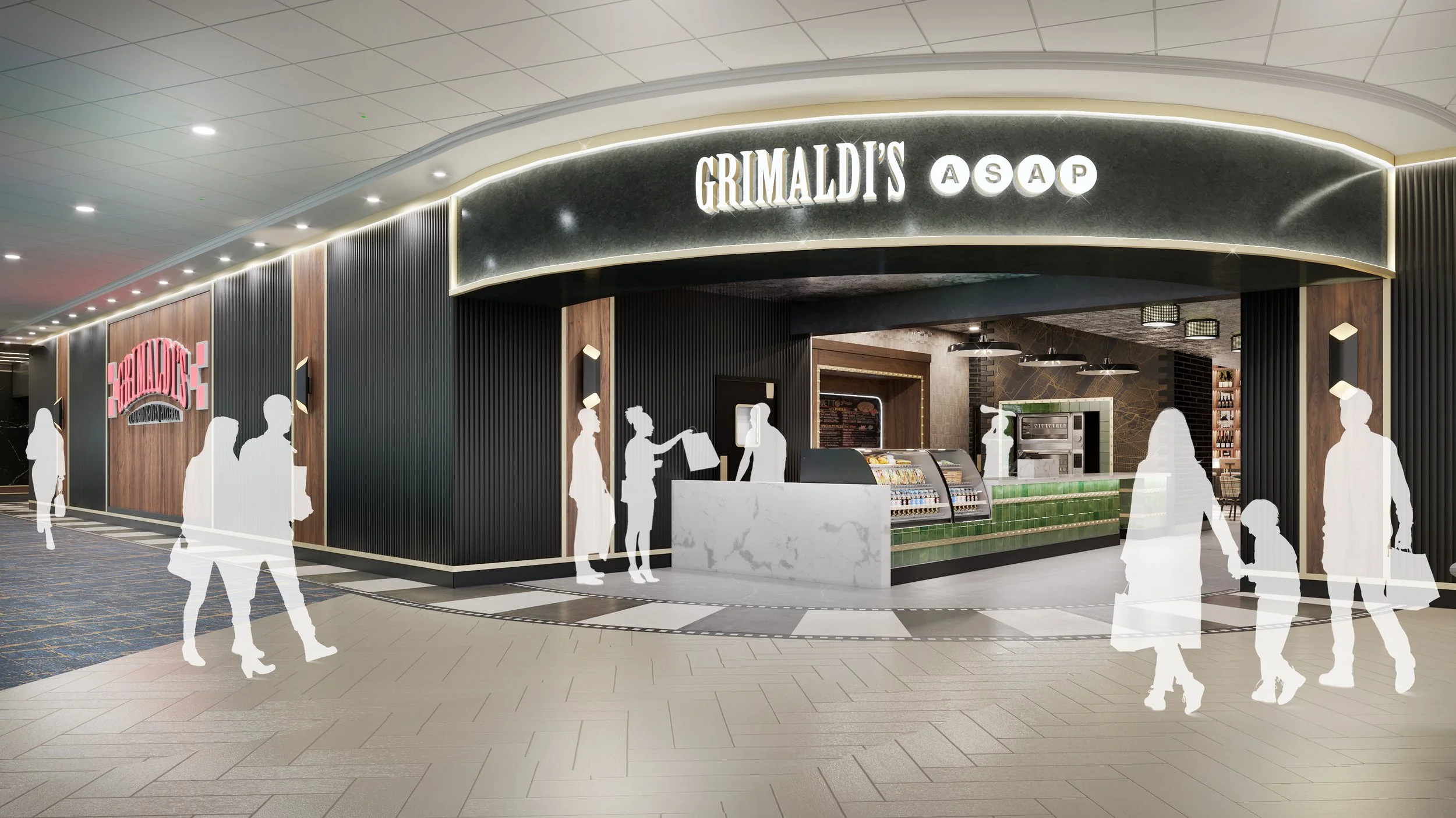 Grimaldi’s Pizzeria at The STRAT brings a slice of New York to the Las Vegas Strip, blending iconic East Coast charm with elevated Vegas flair. The space features custom New York–inspired graphics and artwork, honoring the brand’s roots and the hometown of its owners. Designed as a quick-service concept with a full bar and lounge, it captures the energy of Vegas while maintaining a warm, authentic atmosphere. Reclaimed New York brick, classic plaid fabrics, rich green tones and bold finishes create a cozy yet polished setting for locals and tourists alike.