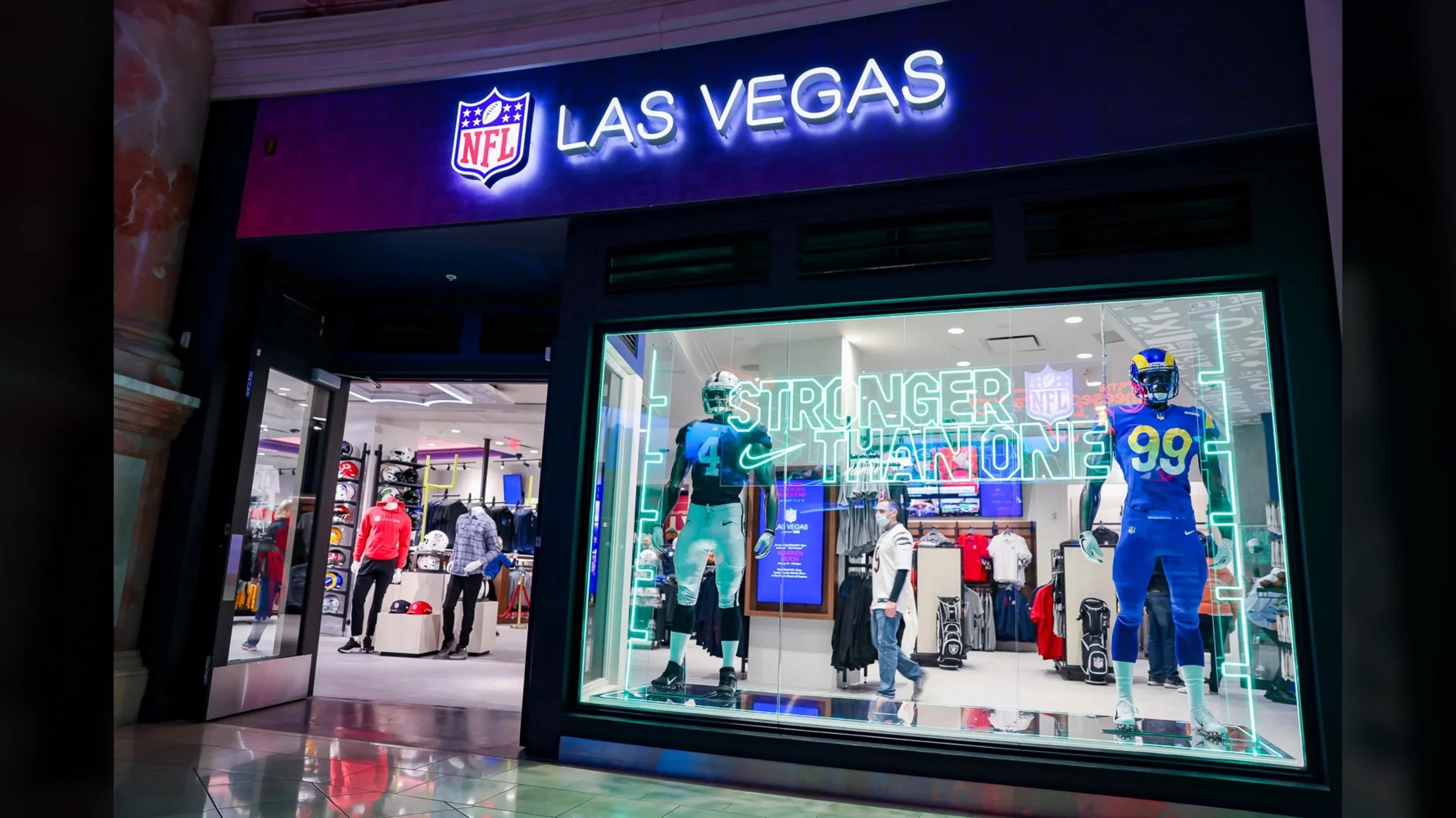 In the lead-up to hosting the 2022 Pro Bowl and the 2024 Super Bowl, Las Vegas was buzzing with anticipation and the NFL was right at the center of it. When the chance emerged to open a flagship store at the iconic Caesars Palace Forum Shops featuring all 32 NFL teams, it was clear this needed to be more than just a retail space.